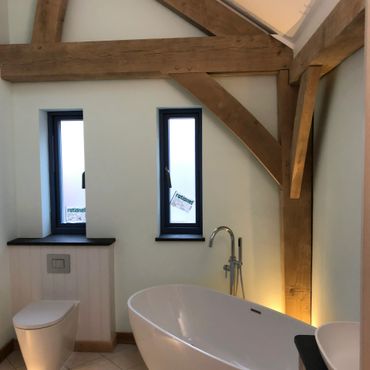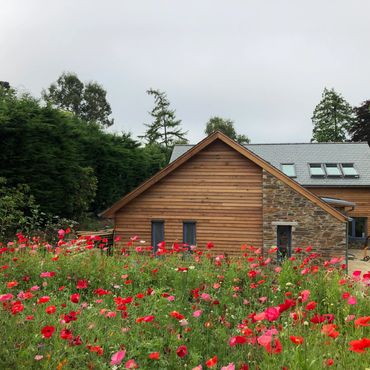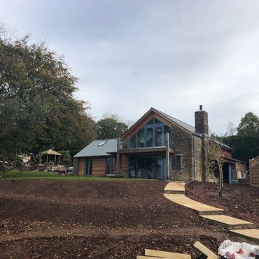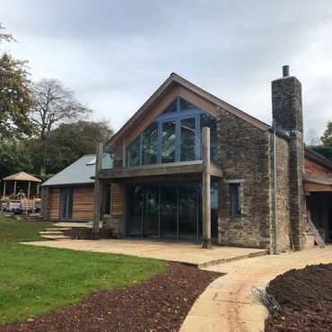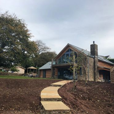 Complete oak frame new build in Harbertonford and landscaping.