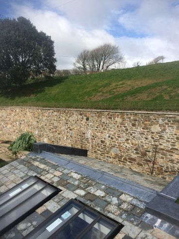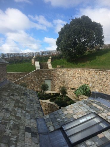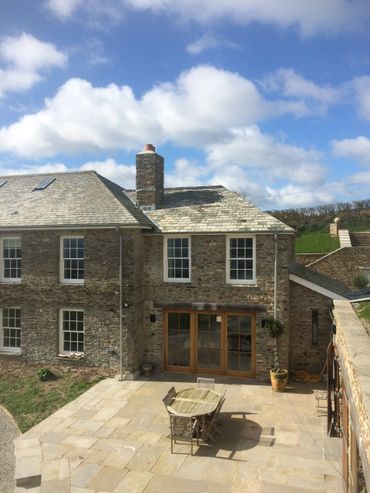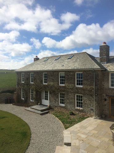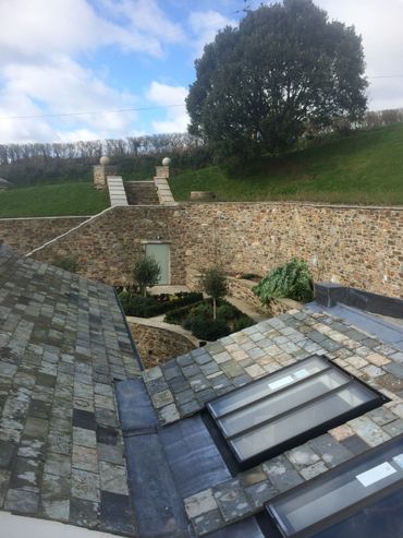 Complete refurbishment of a former barn conversion, including extensive retaining walls to create courtyard area, 2 large extensions on side and rear. Extensive landscaping including large retaining walls and underground garage, stabling, and complete new roof– approximately 20,000 ton of earth was removed to form garden courtyard area.